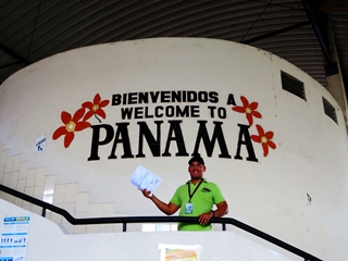Im Überqueren von Grenzübergängen bekommen wir schon langsam Routine. Wir nehmen uns den freundlichsten Grenzhelfer … nach 1 Stunde und 10 Minuten fahren wir noch durch die tröppelige Fumigation … wir sind in Panama.