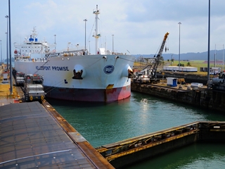 Am Sonntag fahren wir in Richtung Colon … vorerst geht es an die Gatun-Locks an der nördlichen Seite des Panama-Kanals. 80 Kilometer verbindet die Wasserstraße den Atlantik mit dem Pacific. Ein gigantisches Bauwerk, um eine enorme Abkürzung des Seeweges zu ermöglichen … Zeit und Kosten für den Schiffstransport zu sparen. Mehr als eine Millionen Schiffe aus aller Welt haben seit der Eröffnung in 1914 den Kanal durchfahren. Über drei Schleusen werden die Schiffe von Null auf 26 Meter Höhe und wieder runter auf den Meeresspiegel gebracht … für uns ein interessantes, technisches Bauwerk.