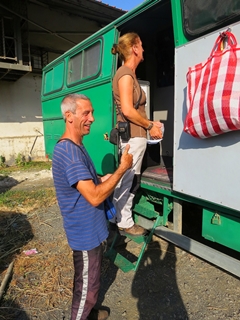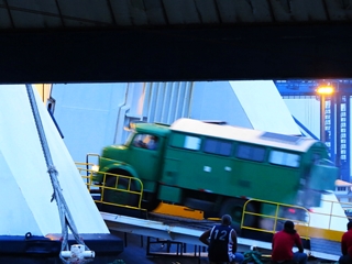Auch bei der Polizei ist am nächsten Tag die Hölle los … immer mehr Fahrzeuge kommen, wollen mit auf die Fähre. Die Abwicklung ist chaotisch … stundenlang verbringen wir auf dem Gelände der Polizei … bis wir unsere Ausreise-Papiere für die Autos haben.