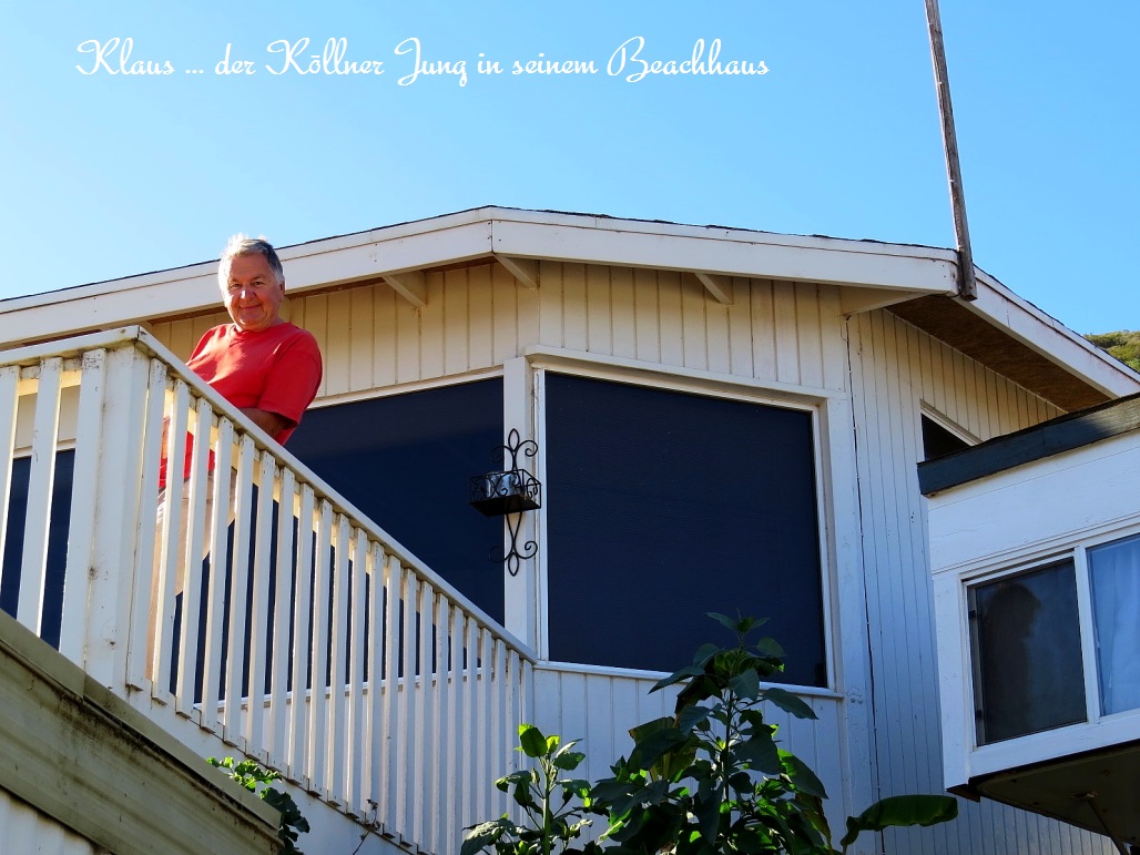Auch auf dem Campground ist eine nette Gesellschaft. Alfredo und seine Frau, die Besitzer … Gerry aus den USA mit seinem VW-Bus ... William, der Dauerzelter mit seinem Motorrad und Klaus, ein echter Jung aus Kölln, schaut mal nach dem Rechten in seinem Beachhouse. Klaus lebt seit mehr als 40 Jahren in Amerika, kennt nicht nur die USA. Wir besuchen ihn in seinem schönen Beach-House, geniessen californischen Wein und Käsehäppchen.