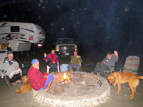 Mit uns stehen nur zwei weitere canadische „Snowbirds“ auf dem riesigen Platz. Am Abend trifft noch ein Päärchen aus Canada ein. 5.000 km in fünf Tagen sind sie gefahren … noch einmal weitere 1.000km, bis zu den richtigen Wellen für ihre Surfboads … hm. Sie Sind zu müde, um sich zu uns ans Feuer zu setzen.