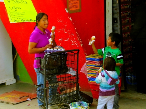 Internet-Cafe, Tanken (letzte Möglichkeit in Rosario),Einkaufen. Es ist Sonntag, viele Mexicaner gehen Sonntags einkaufen. Nur Wenige kaufen Fleisch, die Meisten kaufen Eier… wir bevorzugen auch die Eier.
