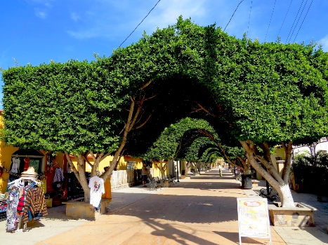 Mal wieder geht es durch die Berge zu einem neuen Küstenabschnitt …. an die Bahia Loreta. Die Stadt Loreta, eine saubere, moderne Touristenstadt … zur Zeit wenig Touristen. Sogar eine Mall mit kleinen Boutiquen, Cafes mit wunderschönen Gärten …. überdacht von einer schattigen Baumallee, laden zum Bummeln ein.