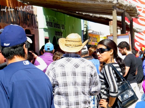 Unser Ziel für heute ist Adolfo Lopez am Pacific. Die langezogene schmale Isla Magdalena liegt direkt vor der Küste … bietet Schutz für viele Wale. Es ist Sonntag, Familientag. Nicht nur wir wollen an die Bucht, um Wale zu sehen. Der uns überholende Verkehr in Richtung Küste nimmt kein Ende. Am Ende werden wir aufgeklärt… es ist heute der letzte Tag des Internationen Wal-Festes. Wir parken auf einem riesigen Parkplatz… außer einem Bierzelt steht hier kein weiteres Fahrzeug. Laut Polizei dürfen wir hier sogar über Nacht stehen bleiben… sie passen auf uns auf. Auch wir gehen zum Walfest. Hier wird gefeiert, gekauft-verkauft, getrunken-gegessen … ein riesiger Andrang an den Charterbooten.