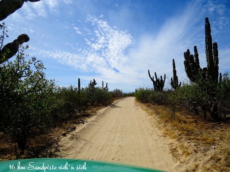Auch heute ziehen wir weiter… wir fahren ans Meer. Bis Punta Conejo 16 Kilometer Sandpiste … für Pummel kein Problem. Fred und Donna wollen auch ans Meer. Mit Walky-Talky bewaffnet machen wir uns auf den Weg.