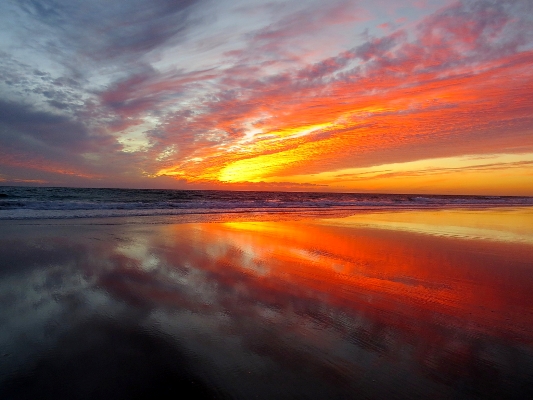 Wir fahren jeweils eine kurze Strecke vor… Fred und Donna folgen. Alles läuft gut … am Ende haben beide Fahrzeuge ein paar Lackkratzer mehr…. wir lassen uns die Brise um die Ohren sausen, campieren im Schutz der Dünen. Am Abend erleben wir einen der bisher schönsten Sonnenuntergänge … die Spiegelungen im nassen Sand, lassen die Beach wie riesige Aquarelle aussehen. 05.02.2014
