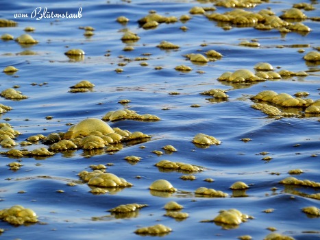 Wir bleiben nur eine Nacht … das Meer ist von dem vielen Blütenstaub nicht sehr einladend.