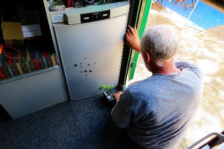 Fast einen Monat in San Miguel … die Zeit ist schnell rumgegangen. Auch wird es Zeit für uns … wir brauchen einen Tapetenwechsel. Sigo hat die Zeit genutzt und kleine Lackausbesserungen und Pflege an Pummel vorgenommen. Das Wichtigste aber ist …. unser Kühlschrank läuft wieder auf Gas. Sechsmal mußte er den Schrank auseinandernehmen, um an die Elektronikteile zu gelangen. Hier mal ein Dickes Dankeschön an die Fa. DOMETIC, die zweimal innerhalb weniger Tage die Ersatzteile kostenlos hierher nach Mexico geschickt hat.