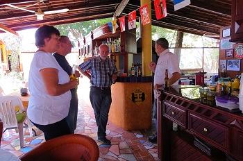Es wird ein lustiger Nachmittag. Valentin, der beste Freund des Hauses leistet uns Gesellschaft … er kommt ins Schwärmen. Viele Geschichten kommen auf den Tisch, wie er und Charly vor vielen Jahren in diese Gegend gekommen sind... hier ihre Existenz aufgebaut haben, die Schwierigkeiten mit den Einheimischen gemeistert haben. Wir kommen aus dem Lachen und Staunen nicht mehr raus. Auch Urs sitzt mit in unserer Runde... Urs bereist ganz Amerika mit seinem Fahrrad. Die Welt ist mal wieder „klein“, er hat unsere Freunde Angi und Claudio in Alaska getroffen und kannte unseren grünen PUMMEL schon von deren Webseite.