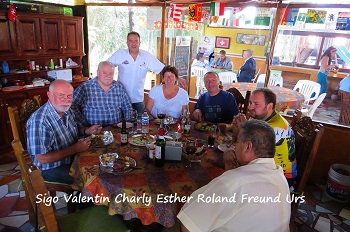 Auch am nächsten Tag sitzen wir wieder zusammen am Stammtisch … die Schweizer Küche und Stimmung sind eine „Gaumenfreude“. Heute ist auch Salvador, der Käser gekommen... natürlich nicht ohne ein paar Stücke von seinem tollen Ziegenkäse mitzubringen. 12.05.2014