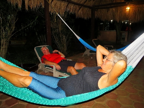 Die beiden offiziellen Campingplätze existieren nicht mehr, auf dem Parkplatz dürfen wir ebenfalls nicht übernachten. Da es sowieso schüttet wie aus Eimern, fahren wir nochmals weitere 60km bis zum östlichen Ortsrand von Valladolid. Der Campground und der erfrischende Pool …. genau das Richtige was wir nach dem Regen brauchen. In den Hängematten lassen wir diesen abwechslungsreichen Tag „ausbaumeln“.