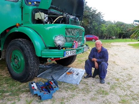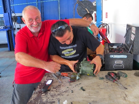 Am Abend treffen wir uns mit Iris und Wolfram auf dem „Trailerpark Mecoloco“... lassen uns von unzähligen, sehr penetranten Moskitos ärgern und beißen. Am Montag landen wir einen Volltreffer … die Werkstatt ist genau die Richtige. Pünktlich um 9 Uhr beginnen die Mechaniker mit dem Ausbau der Lichtmaschine … Diagnose: die Kohlen sind abgenutzt. Sofort begibt sich einer der Angestellten auf den Weg, um „Ersatz-Kohle“ zu besorgen. Nicht passend, aber passend gemacht sind die Kohlen wieder eingebaut, drei Keilriemen werden noch ausgewechselt … das Ganze für weniger als 120 Euro.