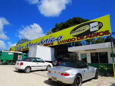 Die Überlegung, nach dem Wochenende noch einmal zurück nach Chitchen-Itza zu fahren, ist für uns endgültig gestrichen. Wir fahren auf direktem Wege in die Karibikstadt Cancun … suchen am verkehrsarmen Sonntag vorab nach einer geeigneten Werkstatt. Wegen der überall geschlossenen Rolltore ist es schwierig Eine zu finden. Wir fragen einen jungen Mann, der gerade sein Restaurant „Lunch-Box“ streicht. Lunch-Boy, wie er sich selbst nennt, bietet uns für die Suche sofort sein Internet an. Fündig geworden läßt er Pinsel und Farbe stehen … freut sich mit uns im Pummel durch seine Stadt zu fahren. Wir finden die ausgeguckte Werkstatt, schreiben uns die Positionen auf und bringen Lunch-Boy nach einer Stunde zurück … Pinsel und Farbe sind inzwischen eingetrocknet.