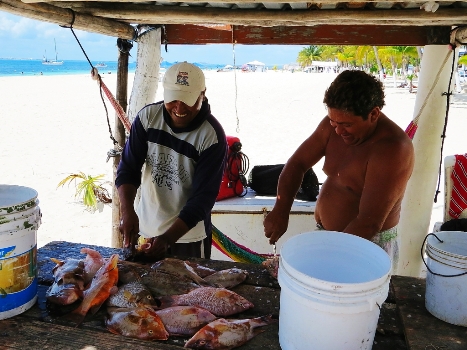 Endlich … Karibikfeeling. Schon die Überfahrt durch das türkisblaue Wasser lassen die richtige Stimmung aufkommen. Die Insel selbst ist ringsum von feinstem Sandstrand umgeben. Hier auf der Insel lacht das Touristenherz … Souvenirs, Restaurants, Hotels, Strandbars für jeden Geschmack und Geldbeutel. Schnorcheltrips, Segeltörns, Tauchtouren... aber auch ohne diese Angebote kann man das herrlich flache Meer zum Schwimmen und Baden voll ausnutzen. Wir verbringen einen wunderschönen Tag auf der Isla Mujeles.