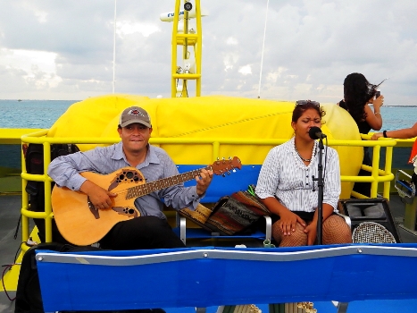Bevor die dicken, schwarzen Wolken am Festland in Gewitter ausarten, lassen wir uns mit der 17 Uhr Fähre wieder zurückbringen … musikalische Begleitung für ein kleines Trinkgeld inbegriffen.