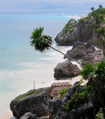 Gut, daß wir uns nicht nur auf die Wettervorhersagen verlassen … auch heute scheint wieder die Sonne. Wir machen einen Ausflug in die 40km entfernte Stadt Tulum entlang der Riviera Maya. Der herrliche Küstenabschnitt ist fast zugebaut … diesmal mit kleineren Hotels, Campgrounds und Vergnügungsparks. Die archäologische Stätte von Tulum sind die meist fotografiertesten Ruinen von ganz Yucatan. Nicht daß Diese besonders gut erhalten sind … es ist die einzigartige Lage an den wunderschönen weißen Sandstränden.