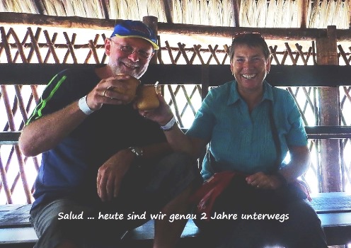 Heute, vor genau zwei Jahren, haben wir unsere Reise in Halifax, Canada, begonnen. Seit dem hat unser Pummel 57.662 Kilometer mehr auf dem Tacho, einen platten Reifen gehabt, ein Stück Auspuff verloren, zehnmal alle Nippel abgeschmiert bekommen, viermal Öl gewechselt, 10.098 Liter Diesel verbraucht (17,51l/100km), einen Satz Motorkohlen für die Lichtmaschine erneuert bekommen und 730 Streicheleinheiten erhalten. Wir haben 123 Reiseberichte geschrieben und ca. 10.000 Fotos hochgeladen und veröffentlicht …