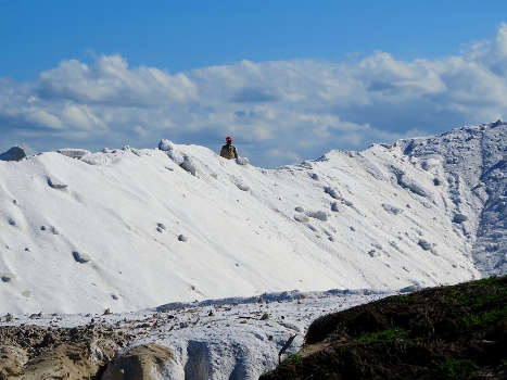 Hier an den Salzlagunen erhoffen wir uns nochmals die wunderschönen Flamingos anzutreffen. Wir fahren auf die schmale Halbinsel … noch sind keine von den rosaroten Vögeln zu sehen. Der erste Picknick- und Beobachtungsplatz ist verbrettert und offiziell gesperrt. Am liebsten würde ich die aufgebrochene Absperrung auch überschreiten … „Du bleibst hier, Jäger schiessen hier auf Alles, was sich bewegt“. Wir fahren weiter. In Las Coloradas sehen wir ein Touristen-Pärchen mit einem Mietauto ... auch sie halten Ausschau nach den Flamingos. Am Ortsausgang können wir die riesigen Salzberge des Abbaus sehen … in der Sonne sehen sie aus wie Schnee.