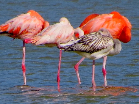 Insgesamt bleiben vier Tage … je länger wir stehen, um so mehr haben sich die Flamingos an uns gewöhnt. Bei ruhigem Verhalten kommen sie bis auf 10 Meter in unsere Nähe. Wir können uns nicht sattsehen … genießen die Meeresbrise und sind froh, daß wir noch einmal hierher gekommen sind !!!