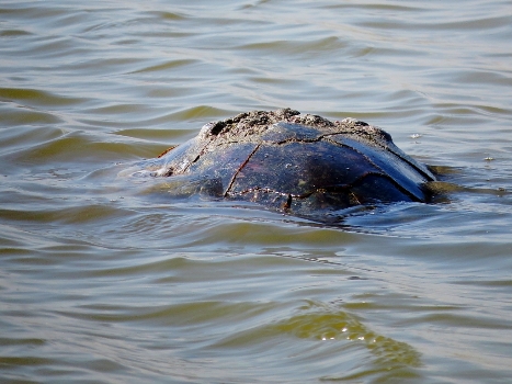 Der Aufbruch von den Lagunen fällt uns schwer … diese vier Tage waren ein tolles Erlebnis. Auf der Rückfahrt sehen wir Spuren auf der sandigen Straße … Spuren die wir nicht deuten können. Ein Quad? Vielleicht ein Krokodil? Groß genug sind die Spuren ja. Wir folgen der Spur mit unserem Pummel ca. 1 Kilometer. Tatsächlich ... vor uns quält sich eine riesige Schildkröte Meter für Meter vorwärts. Sie ist groß … mindestens einen Meter lang und sehr erschöpft. Wahrscheinlich ist sie schon einige Stunden unterwegs und ohne Wasser. Sie versucht vergebens über die Aufschüttungen am Straßenrand in die Lagune zu kommen.... sie sind zu hoch. Sigo reagiert … schiebt mit seinen Füßen den hohen Sand beiseite. Nur noch zwei Meter und die Schildkröte schafft es in die Lagune. Sie schwimmt … wir sind glücklich.