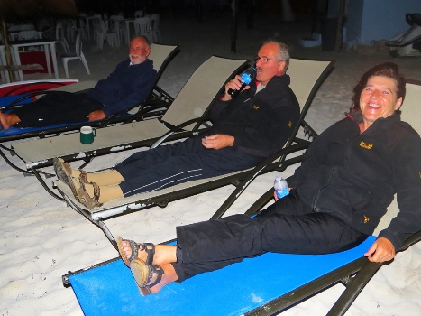 Für die nächsten Tage kündigen sich Rita und Manfred an … „wir kommen!“ „OK... wir warten!“ Wir hatten die Beiden Bayern vor ein paar Monaten bei 'Pepe' getroffen. Die Beschreibung zu unserem Campground ist wieder mal miserabel und sie verpassen uns um ca. 20km. In einer mail kommt die Nachricht „Campingplatz gibt es nicht mehr“. Prompte Antwort von uns: „Gibt es doch, wir stehen hier schon seit zwei Wochen“. Noch am selben Nachmittag kommen die Beiden am Strand auf uns zugelaufen. Die Wiedersehenfreude ist groß …. auf den 'geborgten' Strandliegen verbringen wir beim Sternschnuppenzählen einen herrlichen Abend.