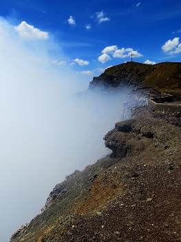 Wir haben heute morgen den Pacific verlassen … kurz vor Jinotepe biegen wir ab. Unser heutiges Ziel ist der Masaya-Nacional-Parque mit seinem schwefelspeienden Vulkan. Nach einem Museumsbesuch am Visitor-Center können wir tatsächlich mit unserem Pummel bis zum Parkplatz am Kraterrand fahren. Der „Brennende Berg“ ist ein Dampfkoch-Kessel. Wir stehen am Kraterrand und versuchen in den Schlund zu schauen ...… nur ein paar Sekunden und der Schwefeldampf bringt uns zum Husten.