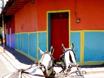 Nur wenige Kilometer weiter liegt die Kolonialstadt Granada.Wie viele Reisende vor uns, stehen auch wir auf dem Parkplatz vom Roten Kreuz. Dieser Stellplatz ist ein „Notfallplatz“ … Notfallplatz, weil er total vermüllt und vergammelt ist. Von Vorteil ist halt die Lage mitten in der Stadt … eine Chance auch mal am Abend bummeln zu gehen. Granada … hinter den bunten Fassaden und den schweren Eingangstoren verbergen sich große Gärten und Innenhöfe... ausgestattet mit geschmackvoll eingerichteten Restaurants, Cafes und Geschäften.