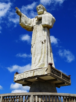 Am dritten Tag graveln wir noch ein paar Kilometer weiter … in La Pepesca (gehört mit zu San Juan del Sur) wollen wir den Deutschen Clemens in seinem Hotel aufsuchen. Vor dem Hotel spricht uns Rolf Stagge, Jugendleiter für viele Jahre im Jugendzentrum Hofgeismar und Gründer des ersten Dritte-Welt-Ladens ebenfalls in Hofgeismar, freundlichst an. Er hat unsere Kasseler Nummer erkannt und ist uns schon einige Kilometer hinterher gefahren. Wir kommen aus dem quasseln nicht mehr raus, kennen die selben Leute. Rolf hat einen Werkstatttermin... wir verabreden uns für später an der Bar bei Clemens. Clemens ist außer Haus, neue Gäste abholen … sein Parkplatz ist mehr oder weniger auch ausgebucht. Um erst einmal Zeit zu verbringen, quälen wir unseren Pummel 20 Prozent die Pflasterstraße zur „Jesus-Statue“ hinauf.