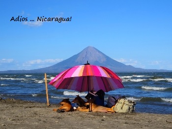 Wir machen einen kleinen Aufstieg zum Mirador. In der Ferne sehen wir die Laguna Masaya … genau dort wird unser nächster Übernachtungsplatz sein. Noch vor dem Feierabend-Verkehr fahren wir durch die lebhafte Stadt Masaya … erreichen am späten Nachmittag das Hostel Paradiso. Für den wenigen Platz direkt hinter der Einfahrt sind wir diesmal zu dick. Hm, wir möchten gerne bleiben ...können für sieben Dollar (p.P.) draußen vor dem Tor übernachten. Ist uns Alles recht, solange wir die schöne Anlage benutzen können. Das Hostel, ausgebucht von Backpackern aus aller Welt, gefällt uns sehr gut. Am Nachmittag klopfen zwei Mädels an … „seid Ihr wirklich aus Kassel?“ „Jaaaaa!“ „Wir auch!!!“ Wir schwatzen ´ne Runde und freuen uns.