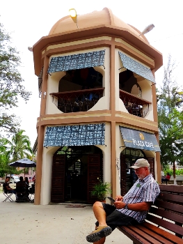 Um das Cafe Plaza tummeln sich die Jugendlichen … hier gibt es free WiFi. Somit sind alle Plätze des kleinen Cafes von Handy-Besitzern beschlagnahmt … wir ordern unseren Kaffee auf die Parkbank.