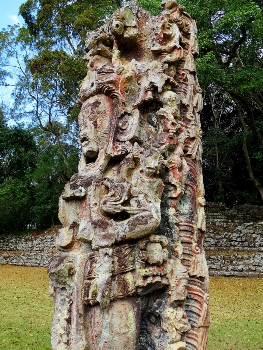 Über den grozen Plaza erreichen wir die kunstvoll gemeißelten Tuffstein-Steelen … portraitiert mit den Herrschern von Copan, Hieroglyphen und Verzierungen. Vor mehr als 1000 Jahren haben die Regierenden sie damals in Auftrag gegeben … der Zustand wird hoffentlich noch vielen Besuchern lange so gut erhalten bleiben. Zeitweise müssen die Figuren einen roten Anstrich bekommen haben, dessen Reste an manchen Steelen noch gut erhalten sind. Wir durchlaufen die Anlage … die Ruinen von Copan sind für uns leider die Letzten.