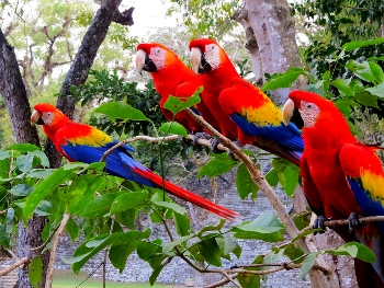Die Archäologische Ausgrabungsstätte hat uns auch beim zweiten Besuch nach so vielen Jahren gefallen. Gefallen haben uns auch die roten Aras Macao … der Nationalvogel Honduras. Hier in den Ruinen lebt eine Kolonie … die sich zum Ausklang unseres Besuches recht fotogen zeigt.