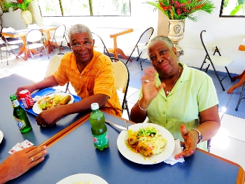 Wir stehen auf dem Wiesengelände des Hotels … sind die einzigen Gäste. Am Abend im Restaurant gönnen wir uns ein lecker Fischfilet … Martha und Nathan aus Tela gesellen sich zu uns. Ihre Vorfahren stammen aus Jamaika. Obwohl sie Beide in Honduras geboren sind, ist Englisch nach wie vor ihre Muttersprache. Wir kommen aus dem Lachen nicht mehr heraus … Martha erzählt mit Mimik und Gestik, mal mit hoher, mal mit tiefer Stimme Geschichten aus dem Leben. Wir sind uns so sympathisch … die Beiden wollen uns unbedingt am nächsten Tag einladen.