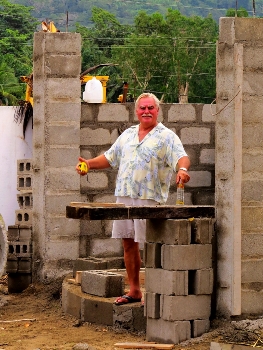 Gunter und seine Honduranische Frau Paula haben viele Jahre in den USA gelebt … einmal nach Honduras zurückgekommen … sofort haben sie sich in dieses Grundstück am Meer und im Hintergrund die Berge verknallt. Seit zehn Jahren sind sie hier … ihr Hotel ist inzwischen auf 53 Zimmer herangewachsen. Jetzt gibt es noch ein paar mehr Eigentums-wohnungen und einen eigens ausgestatteten Stellplatz für die Wohnmobile. Gunter ist im Baurausch … nebenbei ist er der beste Koch deutscher Küche in Honduras !!!