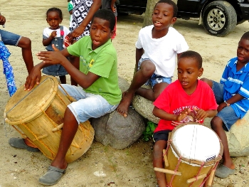 Die Garifunas sind ursprünglich afrikanischer Abstammung … auf Sklavenschiffen wurden sie einst nach Central-Amerika gebracht. Ihre Sprache (Igùeri) ist eine Mixture aus Englisch, Französisch und Spanisch. Für uns sind sie die ärmsten und freundlichsten Menschen zugleich. Als Fischer, Bootsbauer, Trommelmacher, vielleicht in den Plantagen verdienen sie ihren geringen Lebensunterhalt. Gemeinsame Musik macht sie stark und hält sie zusammen … sie haben den Rhythmus mit der Muttermilch aufgesogen.