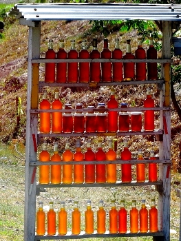 Frisch gebadet, frisch geduscht … unsere Fahrt führt uns auf der gut ausgebauten CA5 weiter in Richtung Osten. Das Leben und Überleben spielt sich rechts und links der Straßen ab. Unter primitiven Ständen wird so ziemlich alles angeboten, was die Gegend zu bieten hat. Fisch aus dem See, Honig aus den Kiefernwäldern, Keramik aus heimischem Ton, Säfte aus süssen Mangos, frittierte Chips aus reifen Bananen, Ananas aus den eigenen Feldern, Rum aus Zuckerrohr.