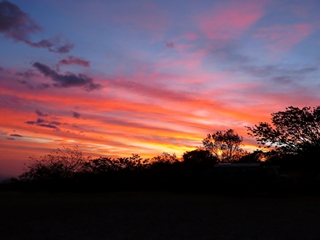 Die Panamericana läßt sich gut fahren … keine Schlaglöcher, keine Topes. Acht Kilometer vor Liberia folgen wir dem Hinweisschild zum Parque Rincon de la Vieja. Der letzte Teil führt über ein Privatgrundstück ... Straßenzoll über700 Colones p.P. werden fällig (100 Colones = 0,20€). Wir übernachten auf dem Parkplatz außerhalb des Parks … ein windiges Plätzchen mit herrlichem Abendhimmel.