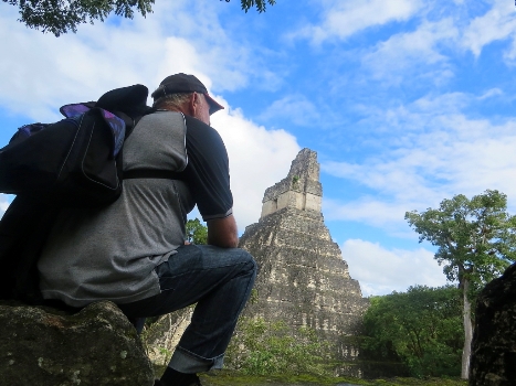 Unser erstes Ziel in ist die ehemalige Maya-Hauptstadt ... Tikal. Im dichten, grünen Dschungel gelegen erreichen wir am Nachmittag den Parque National. Ab 15.30 Uhr bekommen wir die Tickets schon für den nächsten Tag ausgestellt … können aber noch am selben Abend bis 18.00 Uhr unsere ersten Besichtigungen in Angriff nehmen. Auf dem Campingplatz erwarten uns schon Michele und Kurti. Rechtzeitig vor Sonnenuntergang gehen wir noch zum Tempel IV … eigentlich zu weit für heute Abend. Diesmal sind wir ausnahmsweise froh unter vielen Touristen zu sein … in aller Eile sind wir ohne Taschenlampen losgegangen und der Dschungel ist ab 18.00 Uhr verdammt dunkel.
