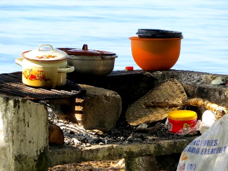 Zurück am See … wir haben neue Nachbarn. Es sind nur drei guatemaltekische Familien, die sich für das Wochenende neben uns niedergelassen haben, aber ein Lärmpegel und eine Anzahl von Menschen, wie bei uns auf einem Volksfest. Die Frauen bruzzeln und köcheln den ganzen Tag, die Kinder vergnügen sich stundenlang im Wasser und die drei Männer lassen sich mit Essen und Trinken von ihren Ältesten rundum bedienen. Die Nacht verbringen die kleinen Kinder in mitgebrachten Zelten … die Erwachsenen schlafen kreuz und quer auf allem was sich anbietet unter freiem Himmel. Am nächsten Morgen wird weitergeköchelt.