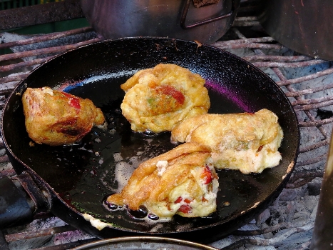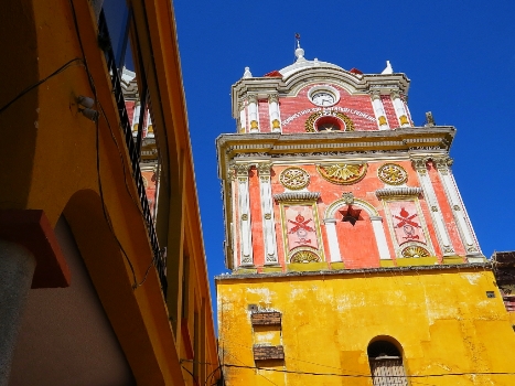 Auf den Treppen der Dorfkirche findet der Blumenmarkt statt … auch ein farbenfröhlicher Anblick. Bevor wir gegen 14 Uhr die Rückreise antreten, essen wir ein paar mit Gemüse gefüllte Eier-Krebbeln. Die sind so lecker, daß wir nachbestellen. Der Besitzer spricht Englisch und lädt uns prompt nach einer kurzen Unterhaltung zu sich nach Hause ein... wir könnten bei ihm campieren. Leider steht unser Pummel am Atitlan-See und genau dahin fahren wir pünktlich wieder zurück.