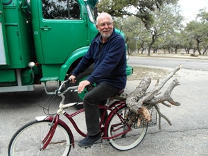 Garner State Park, wenn der Ur-Ur-Großvater wüßte, wie wertvoll sein schönes Land heute ist. Er hatte damals für einen Acre 10 Cent bezahlt. Der Park ist wunderschön, uralte, riesige Eichen, gelegen am Frio-River. Das Land gehört dem Staat, gepachtet, gepflegt und gefegt wird es von einer Privatfirma. Sie arbeiten gründlich, wir finden kein Feuerholz. Pfadfinder Sigo braucht sein allabendliches Feuer, sammelt Holz mit dem Fahrrad. 13.02.2013