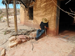 Fort Leaton, hier bekommen wir das neue Permit für die zwei Tage im Back-Country. Die Straße zum Camp ist ein Waschbrett, 80 Minuten brauchen wir für knappe 20km. Wir sind allein, nachts hören wir das Heulen der Coyoten und das Klappern der Wasserwindmühle (nein, nicht das der Schlangen, für die ist es noch zu kalt.