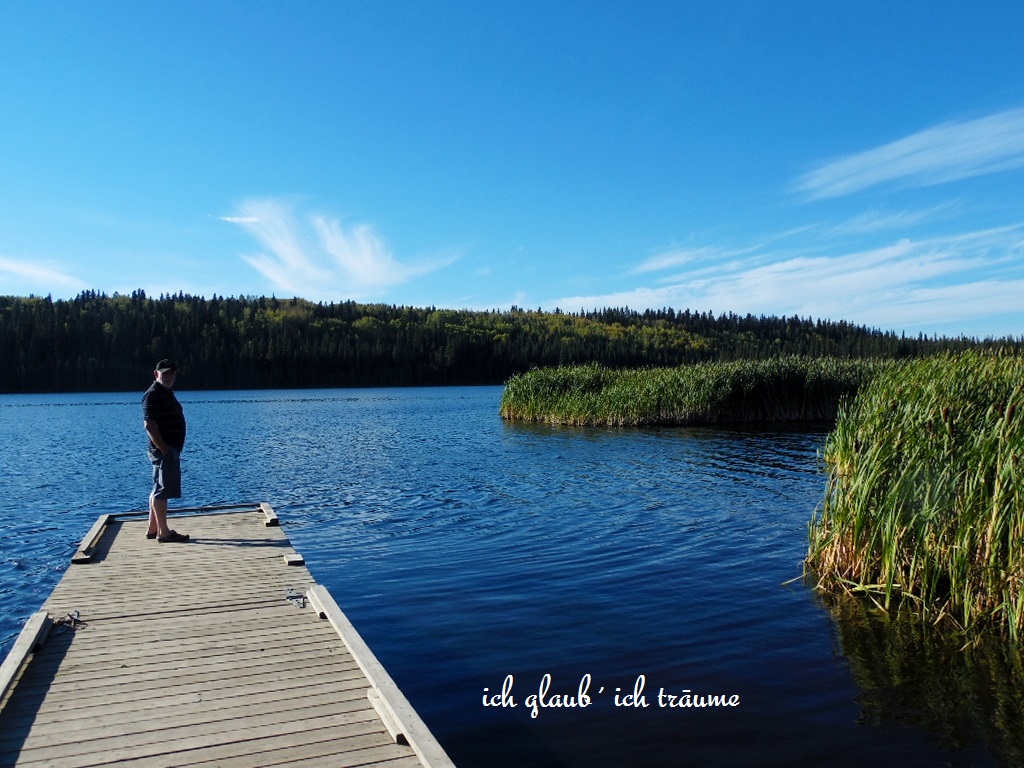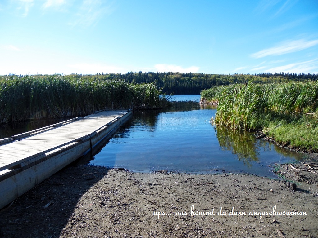 Charlie-Lake Provincial-Park ….. hört sich gut an. Diesmal nur 2km bis zum See mit freiem Stellplatz. Anfang September , supersonnigwarm ….. wir machen es uns gemütlich. Das Schilfufer, rings um den See bietet Schutz und Nahrung für Libellen, Vögel und Biber. Wir genießen die Stille. Vonwegen Stille …es kommt Wind auf. Plötzlich ein lautes Krachen und Knirschen. Eine Schilfinsel von mind. 300 qm schwimmt auf den Angelsteg zu …. drückt und schiebt sich am Steg vorbei. Wir glauben nicht, was wir gerade sehen. Die ganze linke Seite am Ufer fehlt, schwimmt vor uns her und nimmt jetzt noch ein zweites großes Stück Insel mit. Nach einer halben Stunde sind die beiden Teile am Ende des Sees.