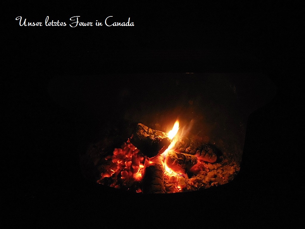 Bis zum Grenzübergang bei Osoyoos/Oroville lassen wir uns noch 1-2 Tage Zeit … wir haben mal wieder zu viele Obst-und Gemüsevorräte. Im großen Bogen fahren wir durch die wunderschönen Okanagan-Highlands, campieren am Kettle-River-Recreational-Area. Hier nehmen wir für uns Abschied von unserem Traumland „Canada“. Alles Gemüse kommt auf die Grillplatte, ein paar Würstchen dazu …. bei nur 8 Grad fällt es uns schwer, endlich unser letztes canadisches Feuer zu löschen.