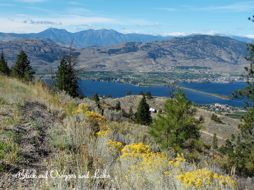 Nur noch 70km bis zur Grenze. Die Fahrt führt durch das sehr schöne Hochland. Bevor wir Osoyoos am Südende des Osoyoos-Lakes erreichen, genießen wir einen fantastischen Blick auf die Okanagan-Range und die Stadt. Mit dieser schönen Aussicht werden wir Canada entgültig verlassen. 25.09.2013