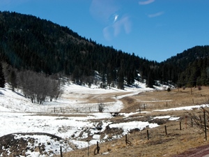 New Mexicos, wir erleben an einem Tag verschieden Klima- und Landschaftsextreme. Morgens, trockene, staubige Wueste.....ein eiskalter Wind. Wenige Meilen weiter.....es wird bergig, Kiefernwälder, Schmelzwasser....es liegt noch Schnee. Farmen, sie leben von Rindern- und Pferdezucht. Obstplantagen Apfelbäume, in voller Blüte...... der Cider ist noch vom letzten Jahr.