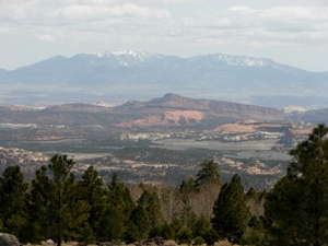 Leider liegen die Parks nicht alle in einer Richtung, wir fahren auf dem Scenic Byway 12 westlich und wieder gen Süden. Es geht durch die Boulders- und Escalante Mountains. Bei 3.000m Höhe liegt noch Schnee….die Aussicht ist wie immer „ beautiful“.