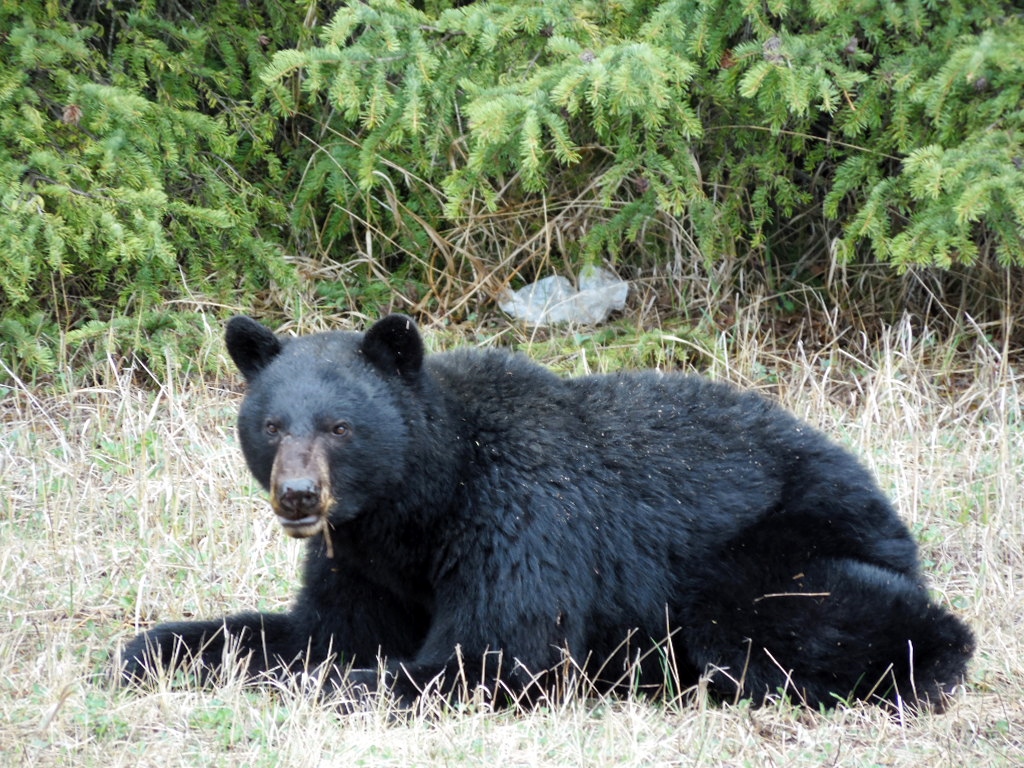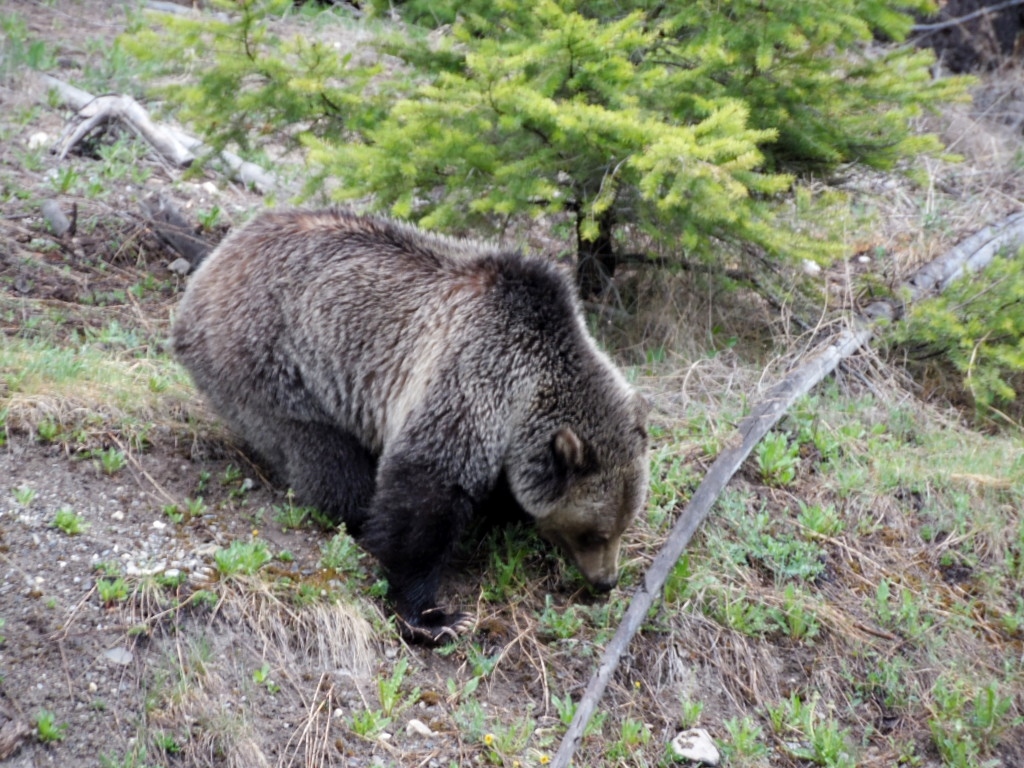 Mit dem Kootenay NP fangen wir an…..hier ist der Bär los. Wir halten Ausschau, ich (Hilu) bin schon fast am schielen…..ein Grizzly. Oah, ist der schön, so kuschelig. Bären sind wilde Tiere, sie können gefährlich werden. Wir steigen auf keinen Fall aus, wofür gibt es eine Dachluke. Wir fotografieren und beobachten diesen schönen Grizzly.