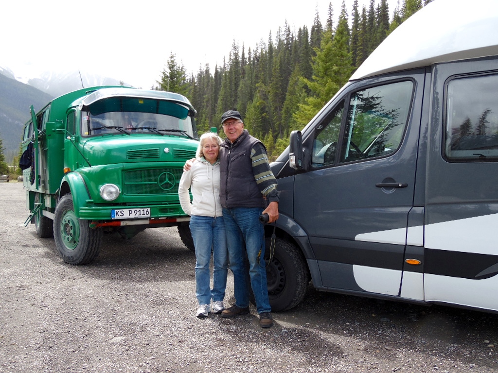 Wir stehen auf einem der Picnicplätze, ein Auto kommt direkt auf uns zu, blockiert uns…Frechheit. Nein! Riesige Freude, Barbara und Wolfgang aus Erlangen haben unseren grünen Pummel entdeckt und wußten sofort … „das ist ein deutsches Auto“. Die Überraschung ist groß, es gibt viel zu erzählen. Auch sie haben Ihren La Strada mit Seabridge für ein Jahr verschifft, die Beiden haben noch drei Monate Zeit…. vielleicht treffen wir uns in Alaska.