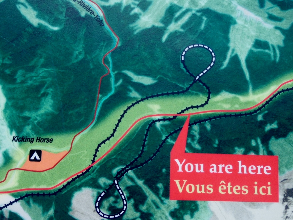 Yoho National Park….Spiral Tunnel… wie ist eine Steigung mit den 100 wagonlangen Zügen in den Mountains zu schaffen? Über eine Spiralschleife im Berg. Die Lok fährt in den Tunnel hinein, kommt nach der Spiralfahrt aus dem Berg wieder heraus, bevor der letzte Wagon überhaupt im Tunnel ist. Das Warten auf einen Zug hat sich gelohnt.